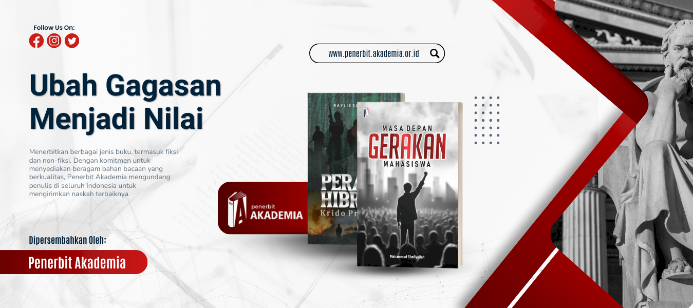 Penerbit Akademia adalah bagian dari Sahabat Akademia Group yang menerbitkan jurnal ilmiah dan berbagai jenis buku, termasuk fiksi dan non-fiksi. Dengan komitmen untuk menyediakan beragam bahan bacaan yang berkualitas, Penerbit Akademia mengundang penulis di seluruh Indonesia untuk mengirimkan naskah terbaiknya.